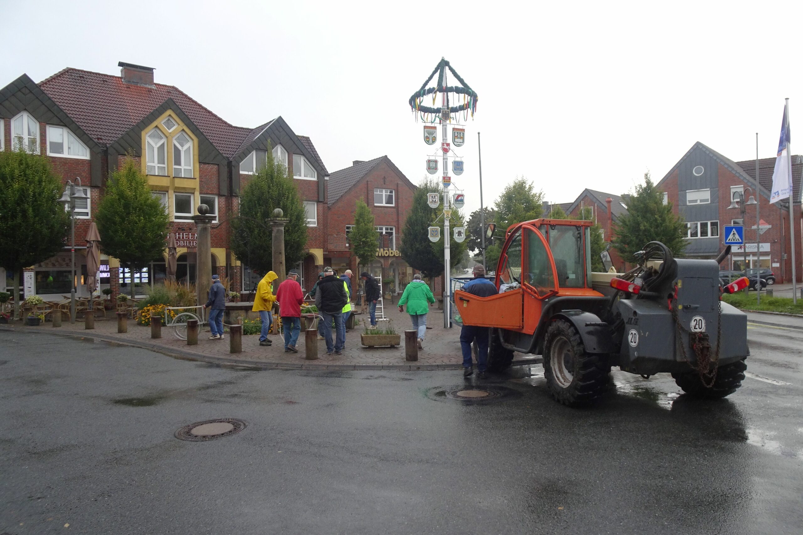 Traditionell bleibt der Maibaum bis nach der Lathener Kirmes, die immer am ersten September Wochenende stattfindet, am Marktbrunnen stehen. Am darauffolgenden Samstag wird er dann vom Heimatverein abgebaut. Auch dieses Mal waren viele Helfer vor Ort