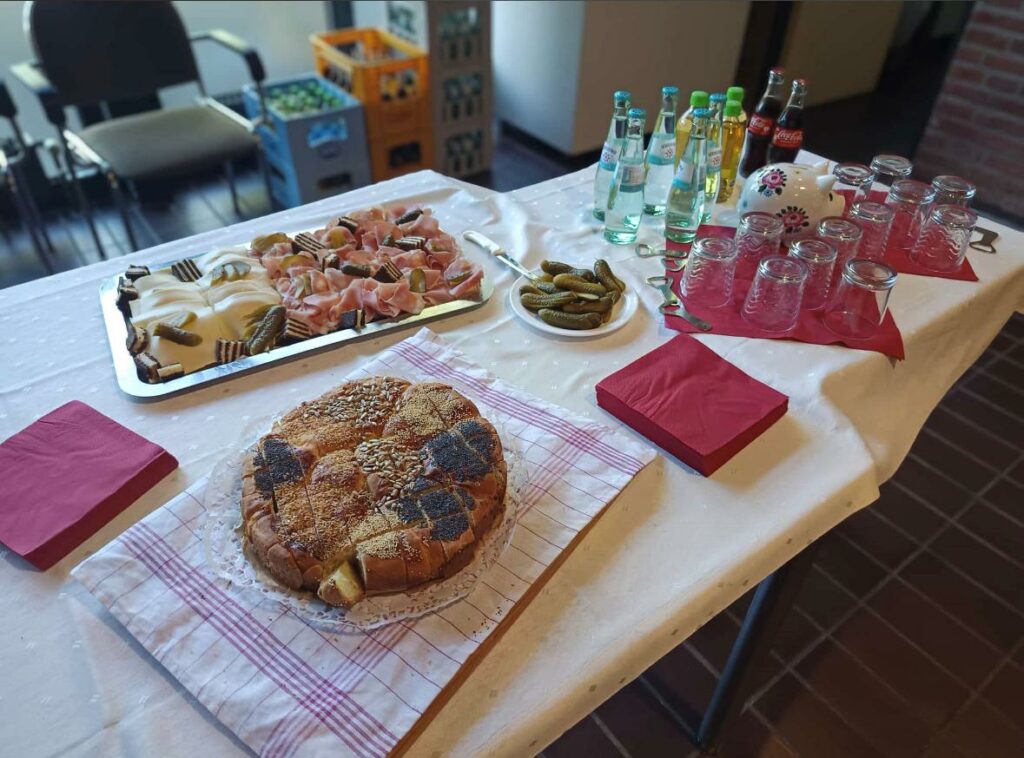 Beginn war um 18.00 Uhr im Haus des Gastes, wo ein ansprechendes Buffet vom Heimatverein Lathen (HV) für die zahlreichen Besucher aufgebaut war. Unsere Katharina hatte wieder Frisch gebackener Bauernstuten, lecker belegt mit Käse und rohem Schinken, sowie selbst gebackenes Rosinenbrot und “Matjes auf Schwarzbrot” luden dazu ein, sich vor der eigentlichen Veranstaltung zu stärken. Diese Stärkung war, genau wie der Eintritt zur Filmvorführung kostenlos; eine Spende war jedoch sehr willkommen!