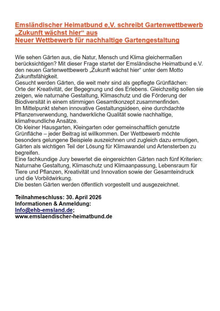 Mitmachen beim Gartenwettbewerb des emsländischen Heimatbund
